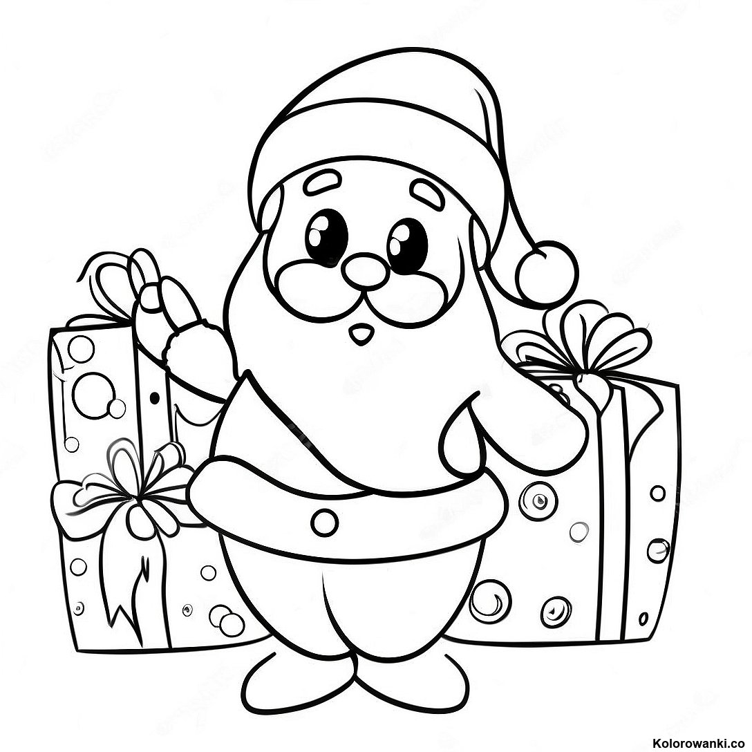 Pobierz Drukowalny PDF Anime Święty Mikołaj Z Prezentami Kolorowanka
