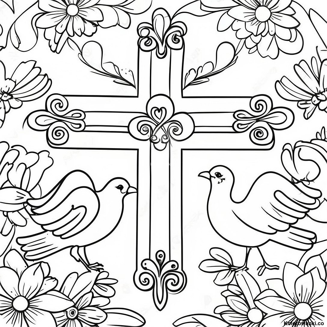 Pobierz Drukowalny PDF Elegancki Krzyż Z Gołębiami Do Kolorowania