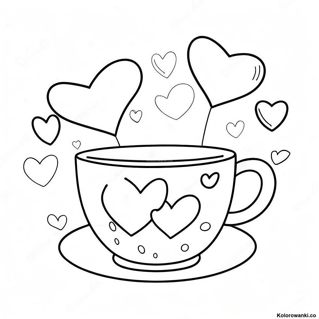 Pobierz Drukowalny PDF Fantazyjna Filiżanka Herbaty Z Sercami - Strona Do Kolorowania