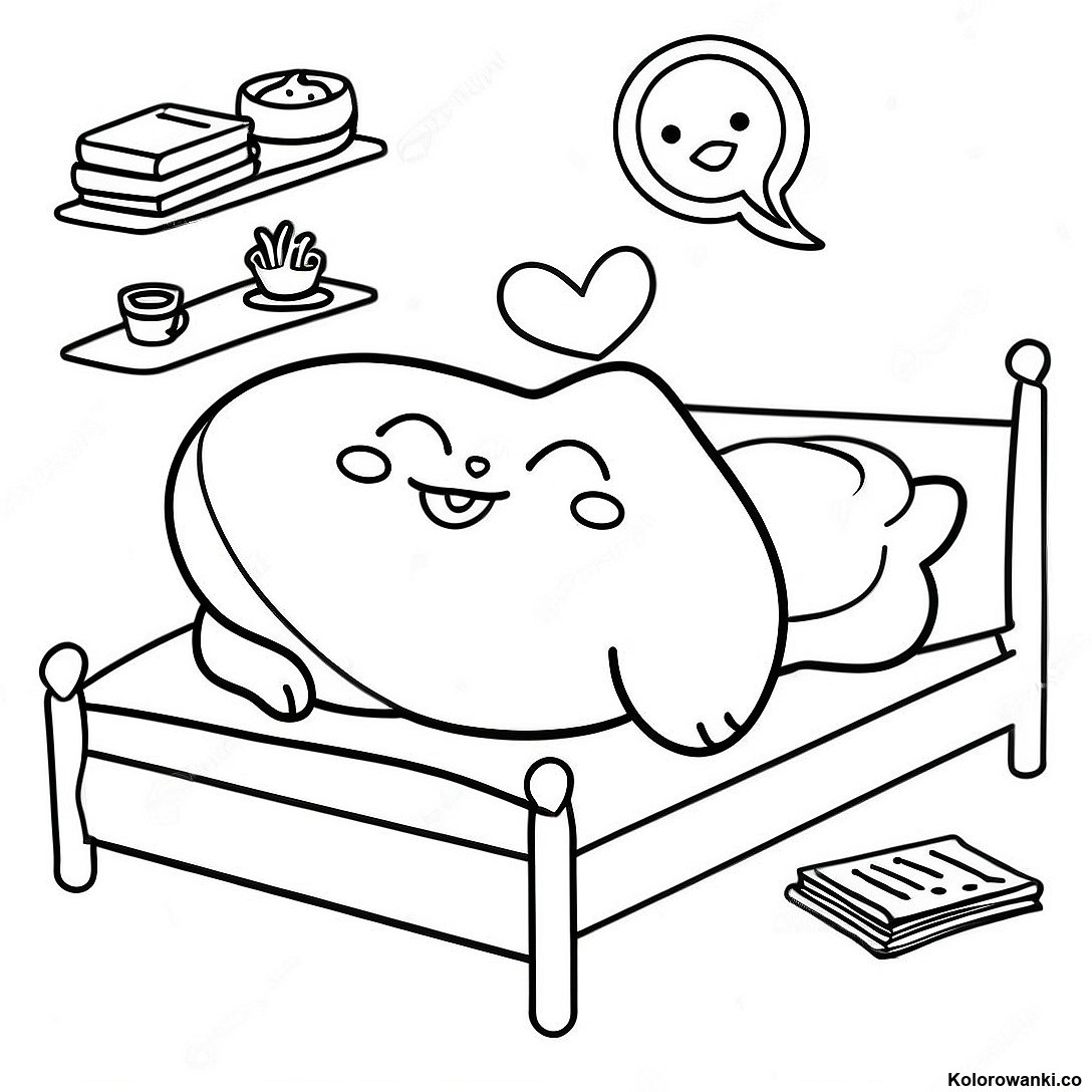 Gudetama Leniwy W Łóżku - Kolorowanka