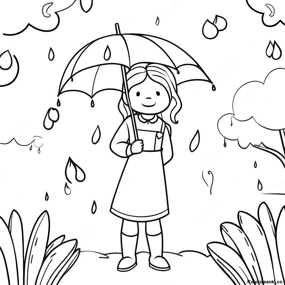 Pobierz Drukowalny PDF Kolorowa Kolorowanka Z Kwietniowymi Deszczami