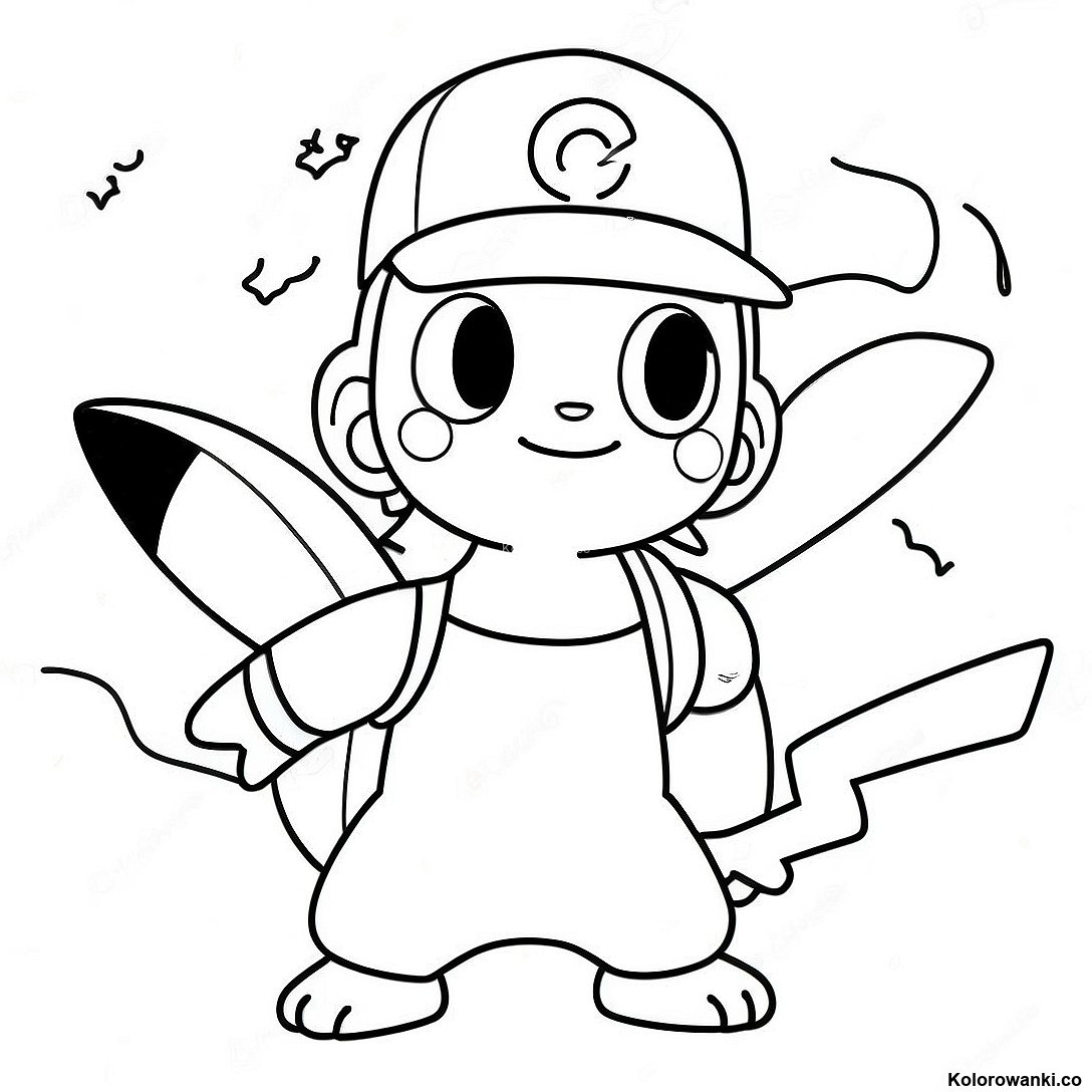 Pobierz Drukowalny PDF Kolorowanka Asha Ketchuma Z Pikachu