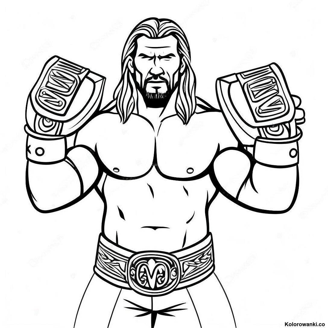 Pobierz Drukowalny PDF Kolorowanka Epicki Triple H Trzymający Dwa Pasy