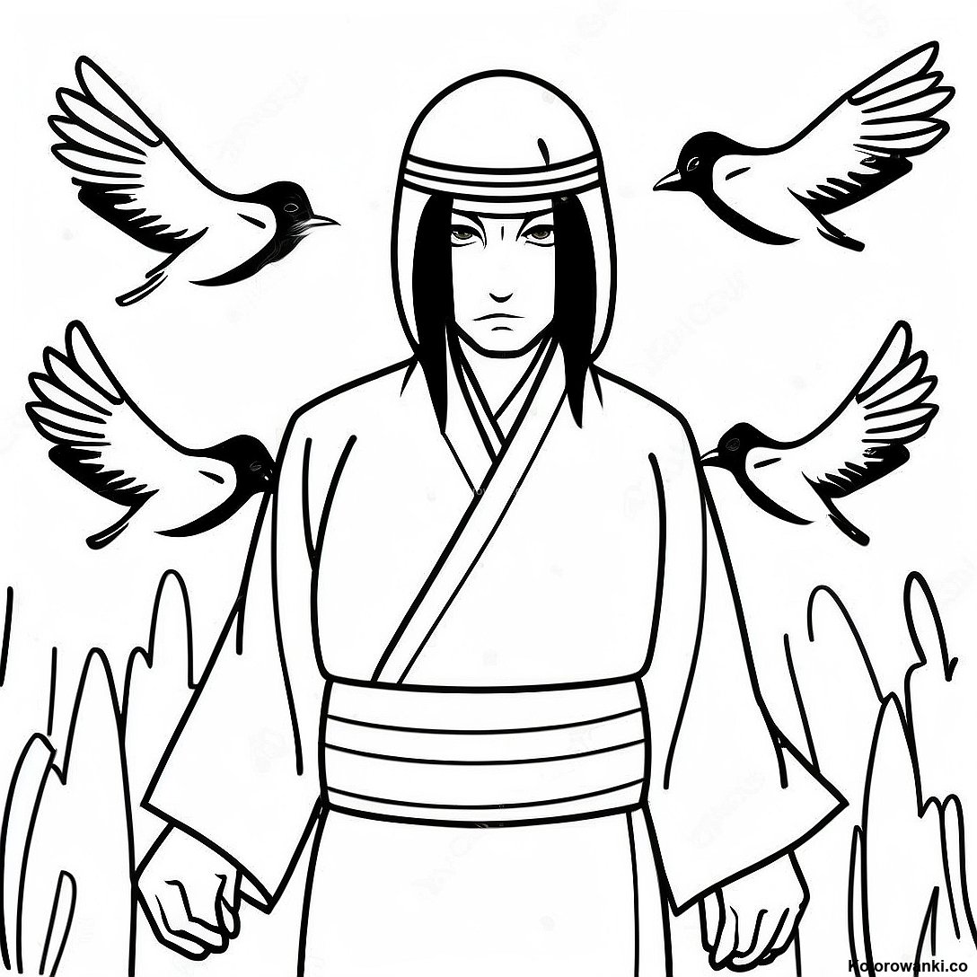 Pobierz Drukowalny PDF Kolorowanka Itachi Uchiha Z Krukami