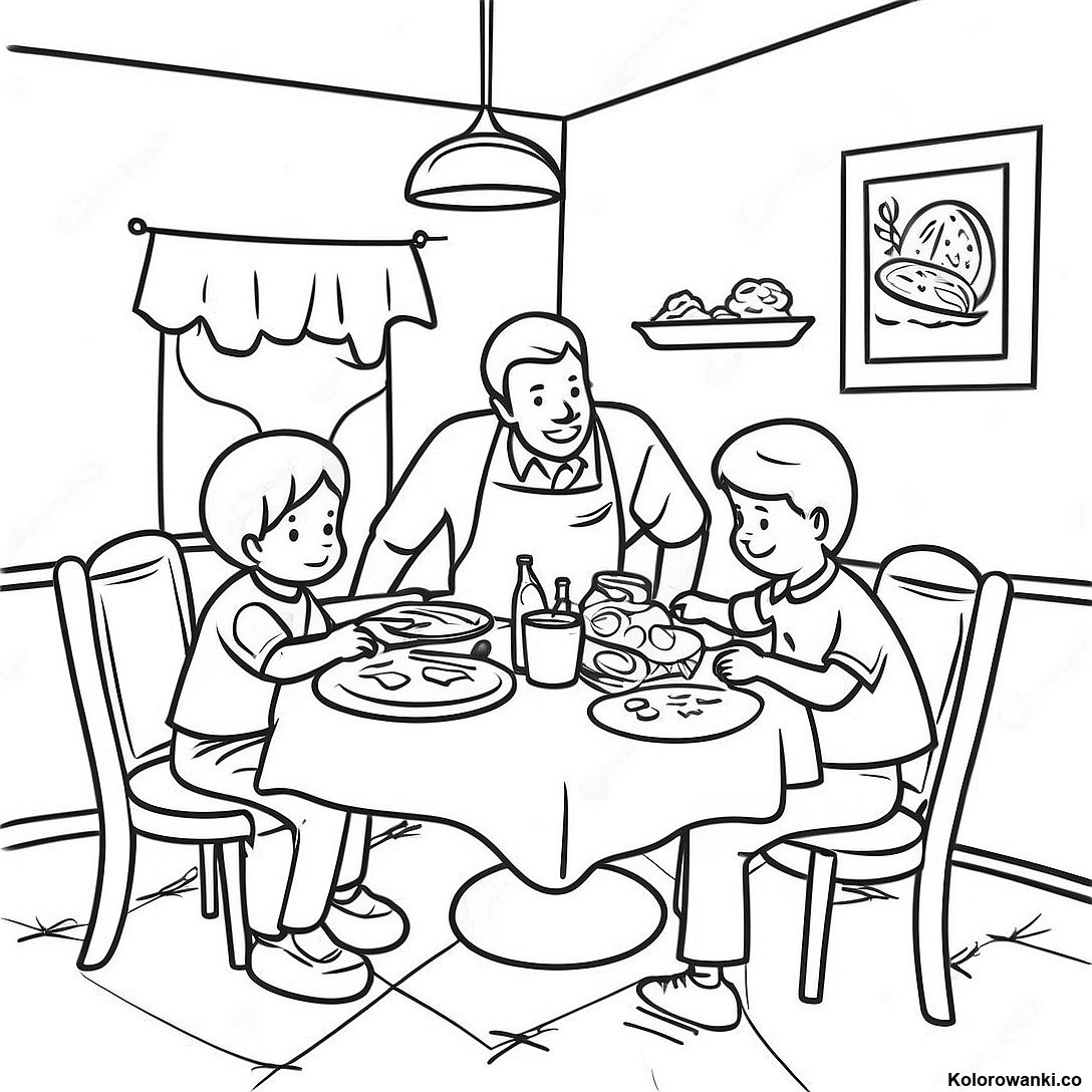 Pobierz Drukowalny PDF Kolorowanka Scena Restauracji Przyjazna Rodzinie