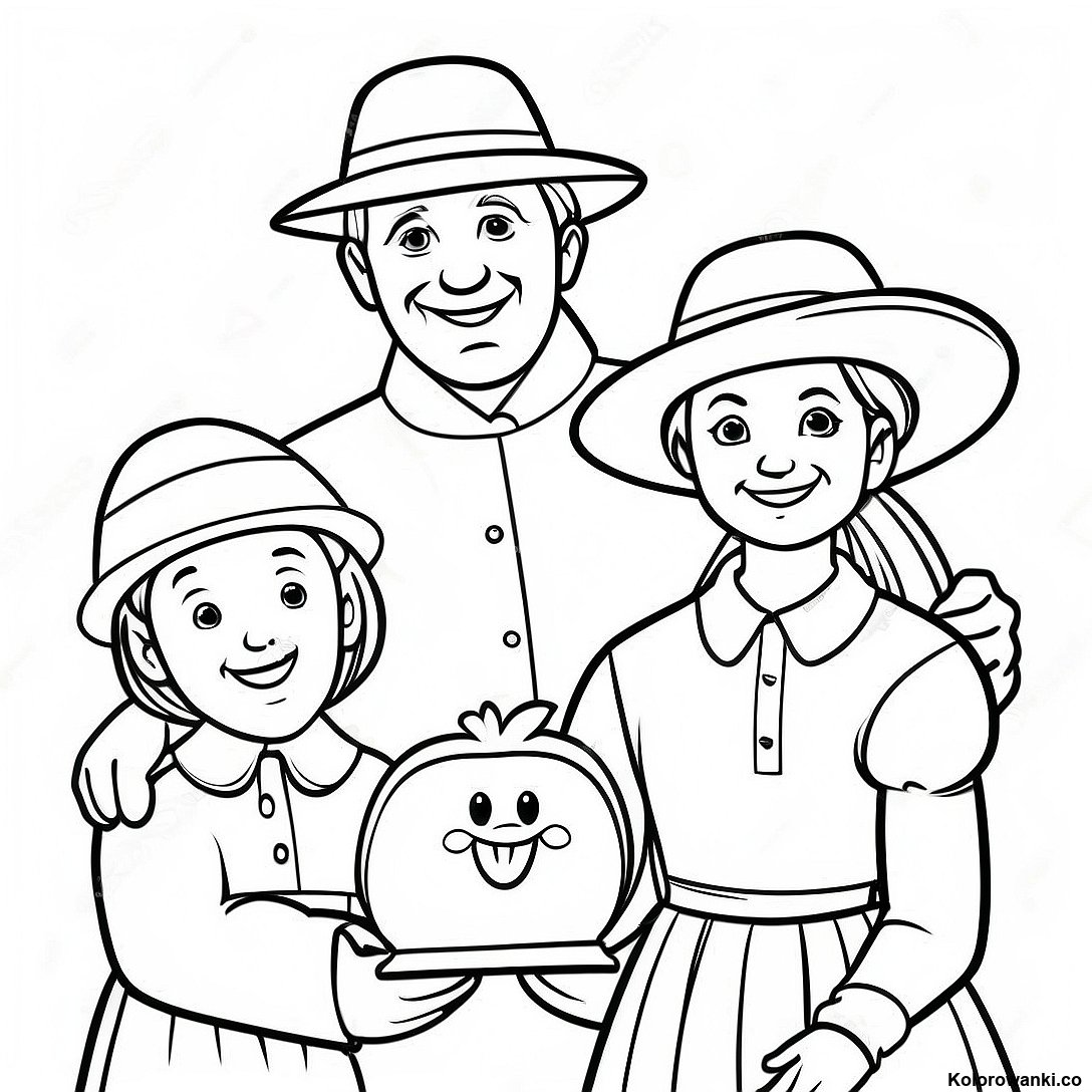 Pobierz Drukowalny PDF Kolorowanka Szczęśliwa Rodzina Pielgrzymów