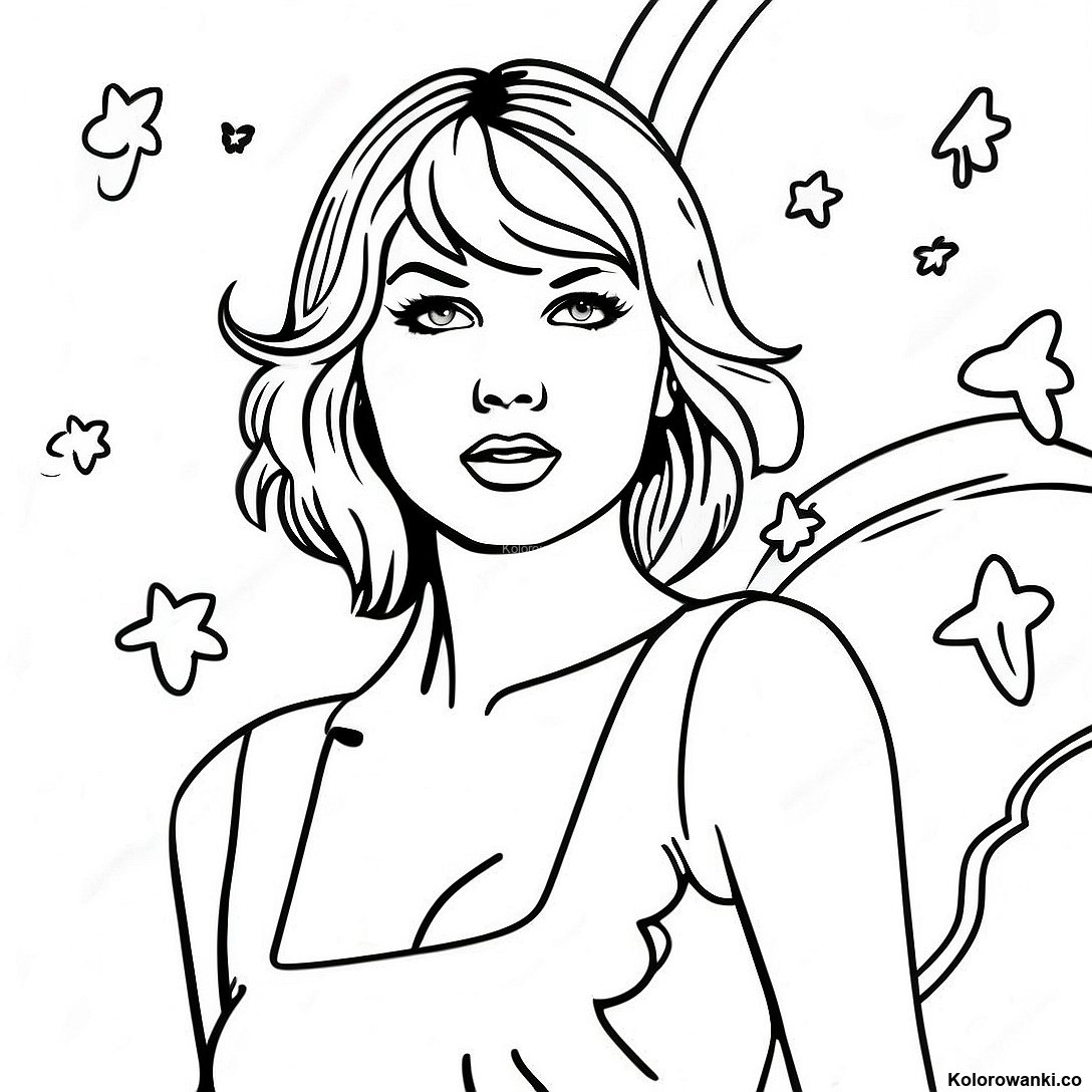 Kolorowanka z Taylor Swift w błyszczącej sukience