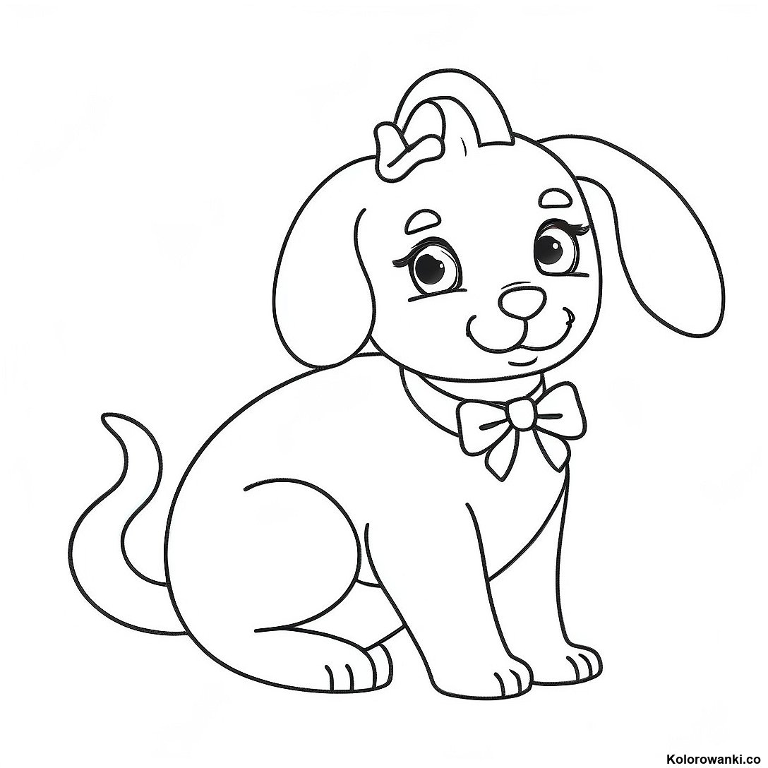 Pobierz Drukowalny PDF Kolorowanka Uroczej Szczeniaka Barbie Z Kokardą