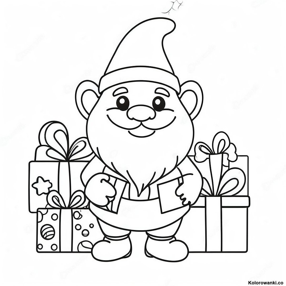 Pobierz Drukowalny PDF Kolorowanka Wesołego Świątecznego Gnomka Z Prezentami