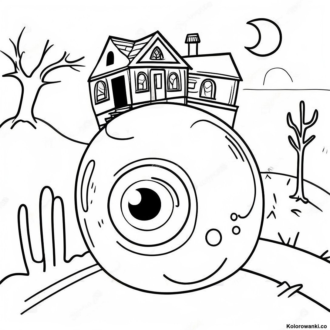 Pobierz Drukowalny PDF Kolorowanka Z Przerażającym Okiem W Nawiedzonym Domu