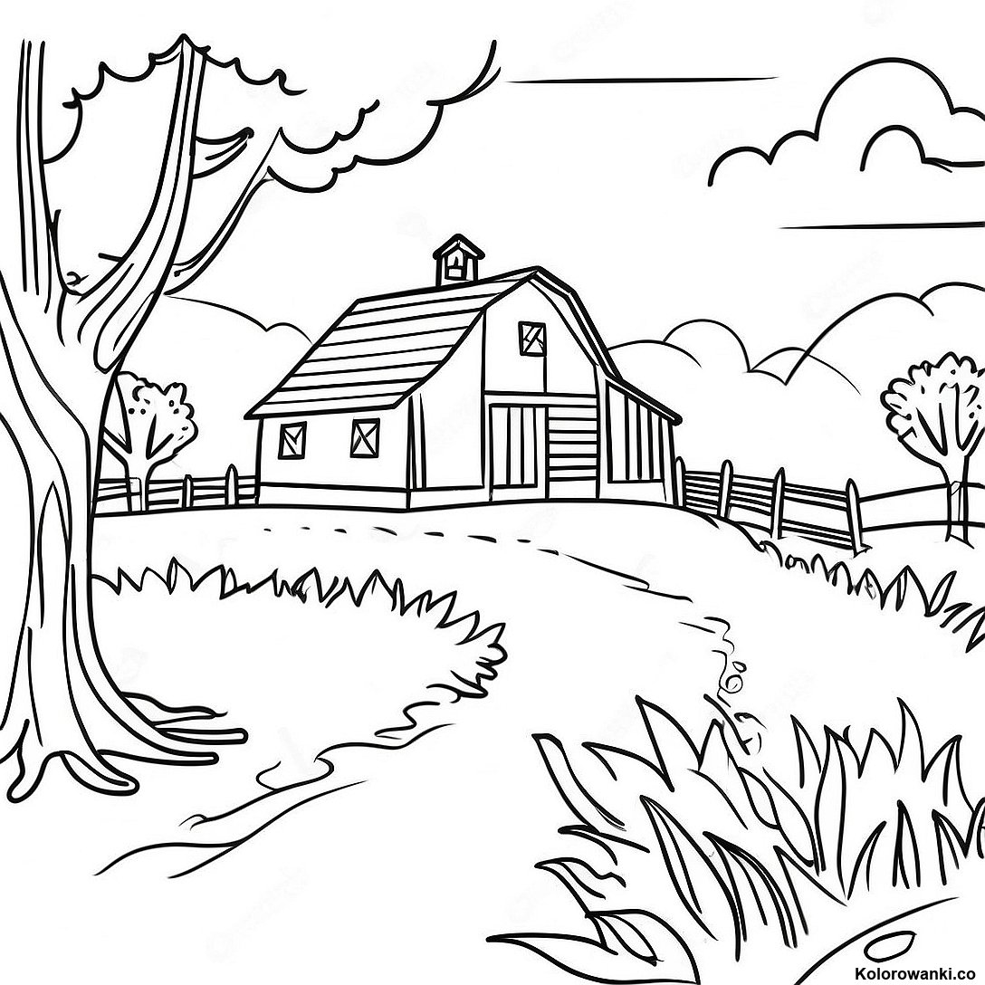 Pobierz Drukowalny PDF Kolorowanka Z Realistycznym Krajobrazem Farmy