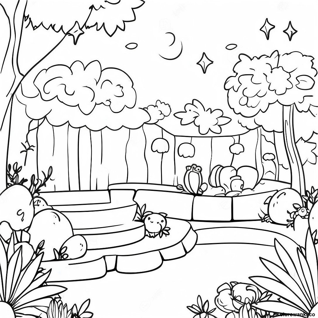 Pobierz Drukowalny PDF Kolorowanka Z Tajemniczą Sceną Ogród Banban