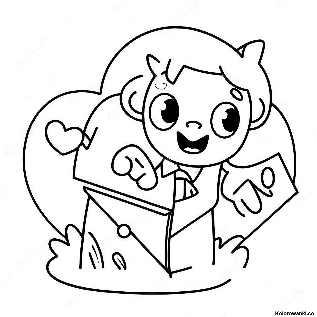 Pobierz Drukowalny PDF Kolorowanka Z Zabawny Chłopcem Wysyłającym List Miłosny