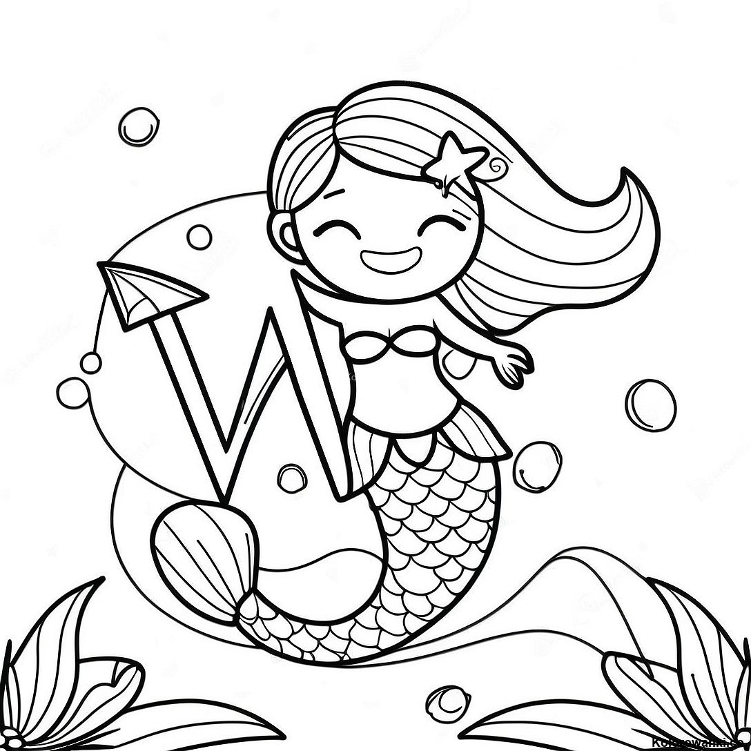 Pobierz Drukowalny PDF Magiczna Syrenka Litery M Kolorowanka