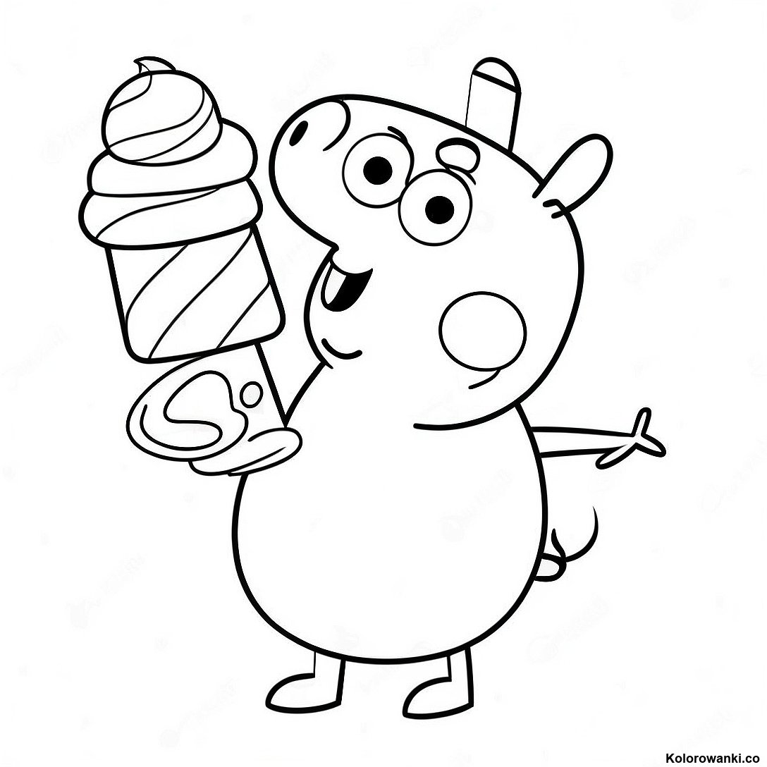 Peppa Pig Trzymająca Topniejące Lody - Kolorowanka