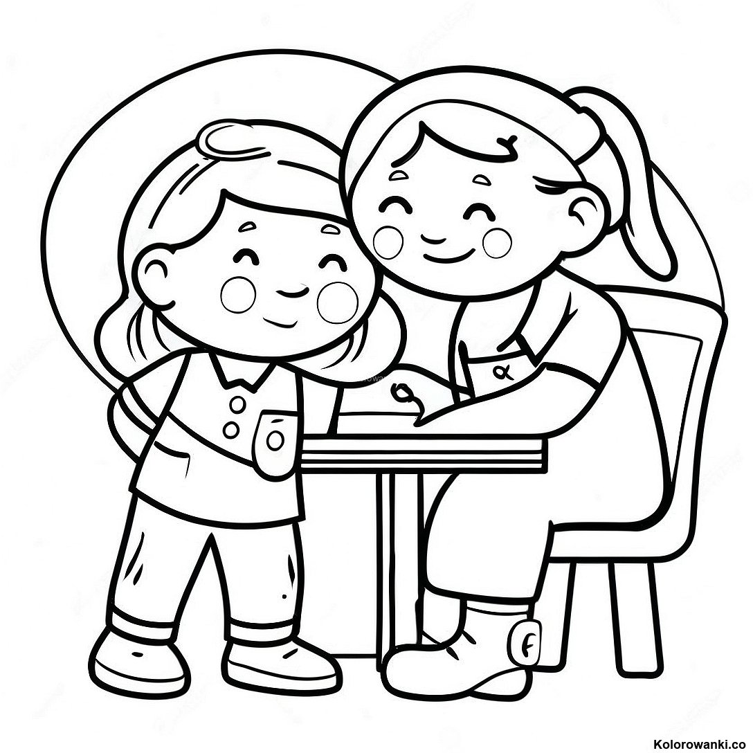 Przyjazna Pielęgniarka Pomagająca Dziecku - Strona Kolorowanka