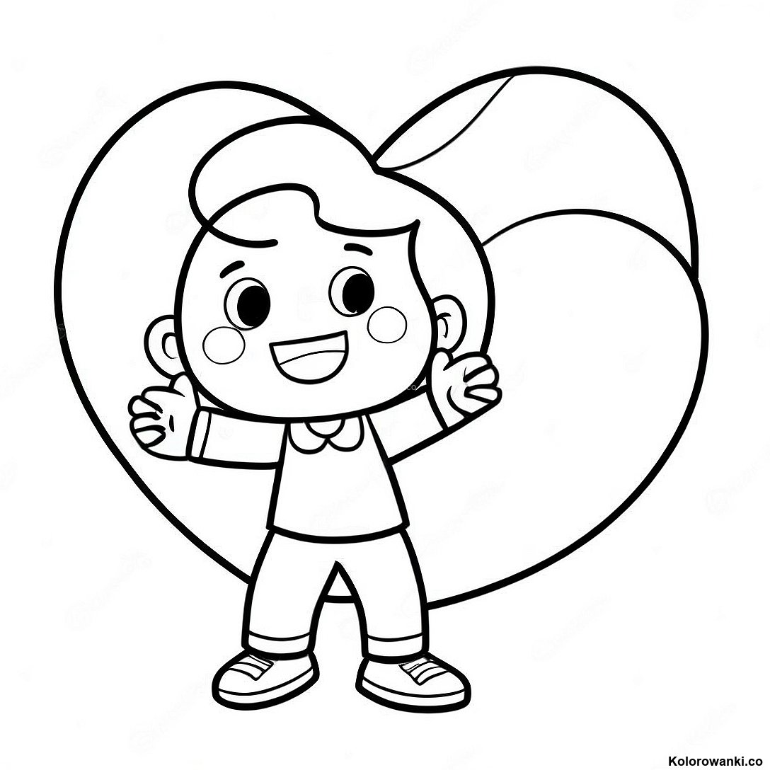Pobierz Drukowalny PDF Radosny Chłopiec Trzymający Ogromne Serce - Kolorowanka