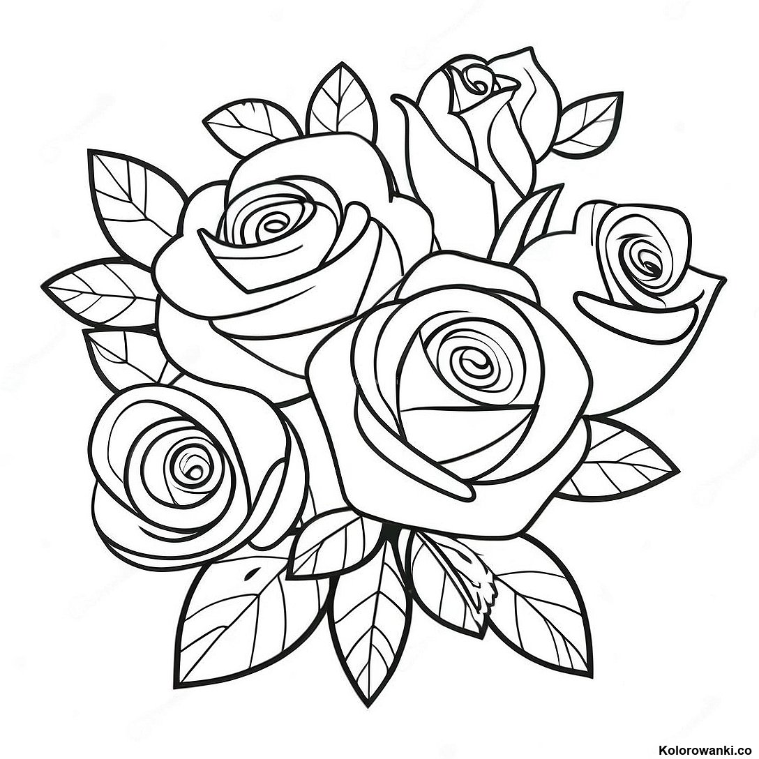 Pobierz Drukowalny PDF Romantyczny Bukiet Róż - Kolorowanka