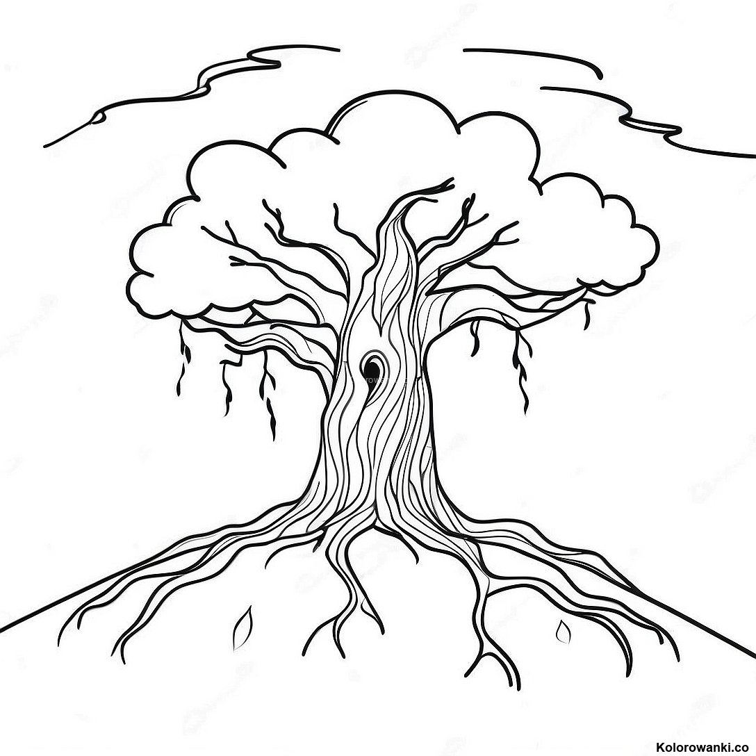 Samotne Drzewo W Burzowym Niebie - Kolorowanka