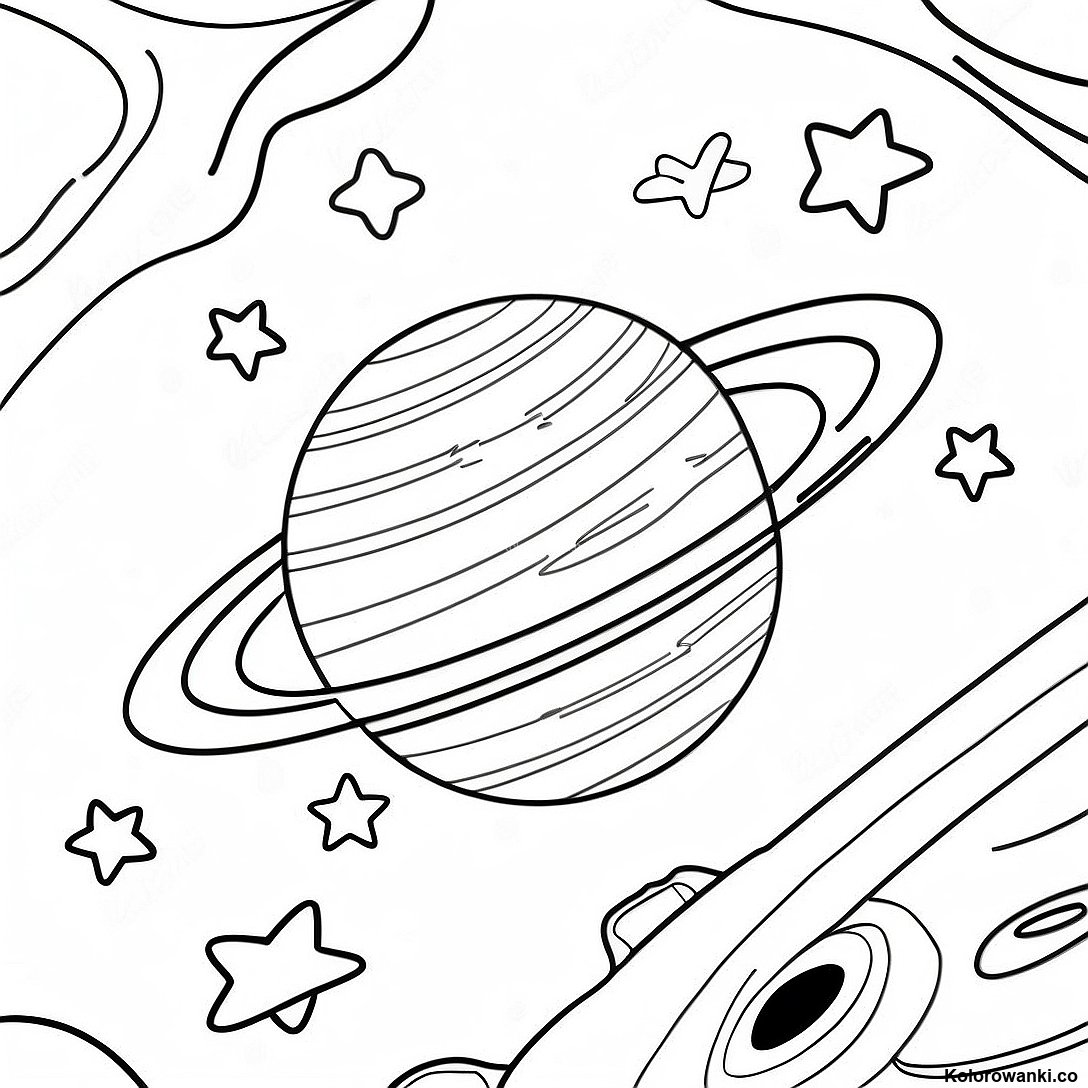 Pobierz Drukowalny PDF Saturn Otoczony Gwiazdami Kolorowanka