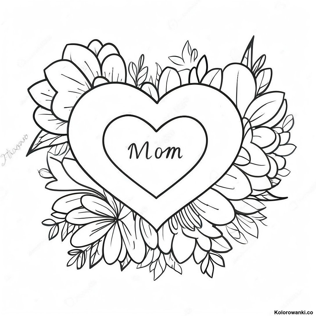 Pobierz Drukowalny PDF Słodka Kolorowanka Z Sercem Na Dzień Matki