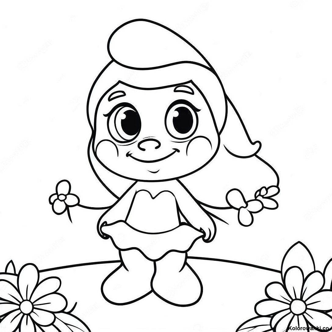 Pobierz Drukowalny PDF Smerfetka Z Kwiatami - Kolorowanka