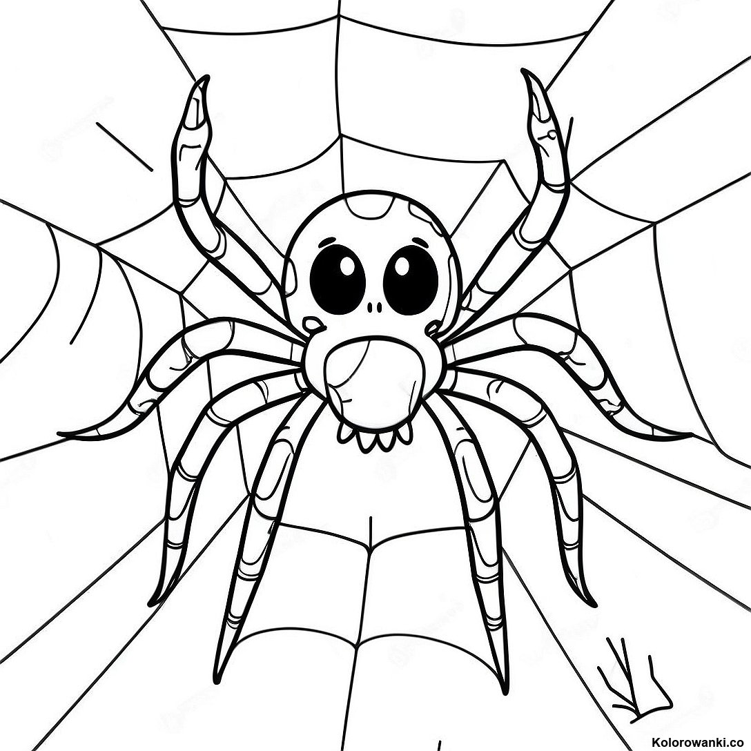 Pobierz Drukowalny PDF Straszny Pająk W Sieci Kolorowanka
