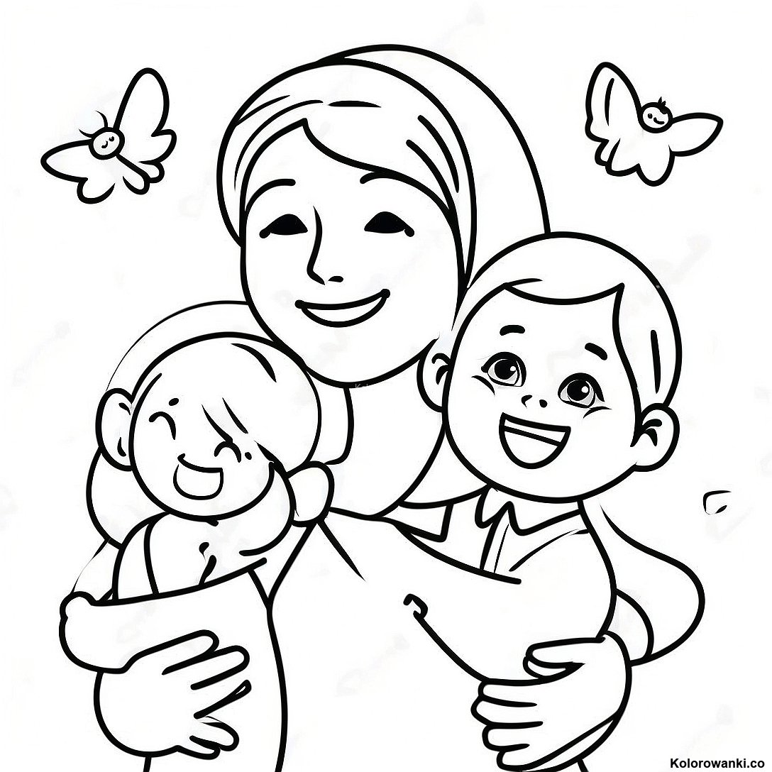 Pobierz Drukowalny PDF Szczęśliwa Mama I Dzieci - Kolorowanka
