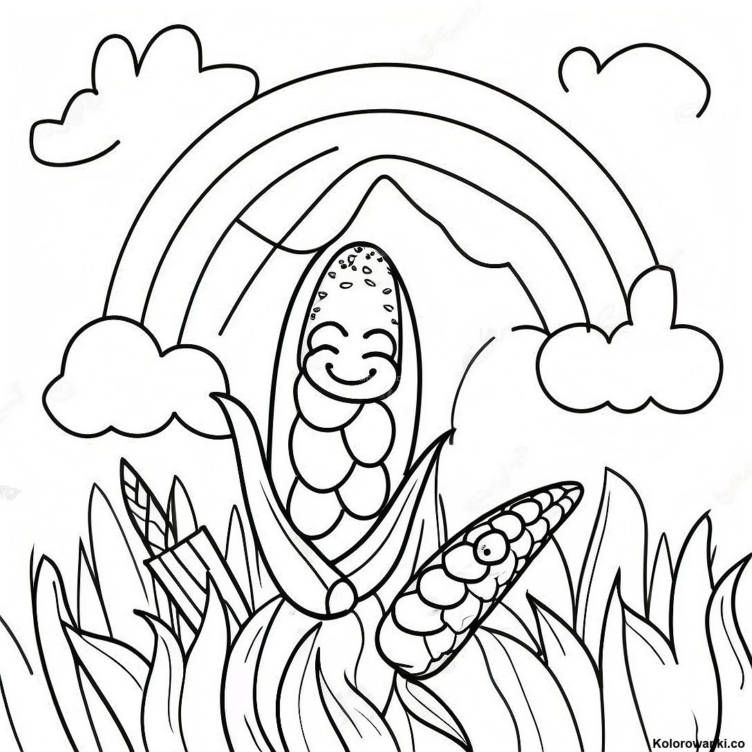 Pobierz Drukowalny PDF Szczęśliwy Tęczowy Kukurydza Na Polu - Kolorowanka