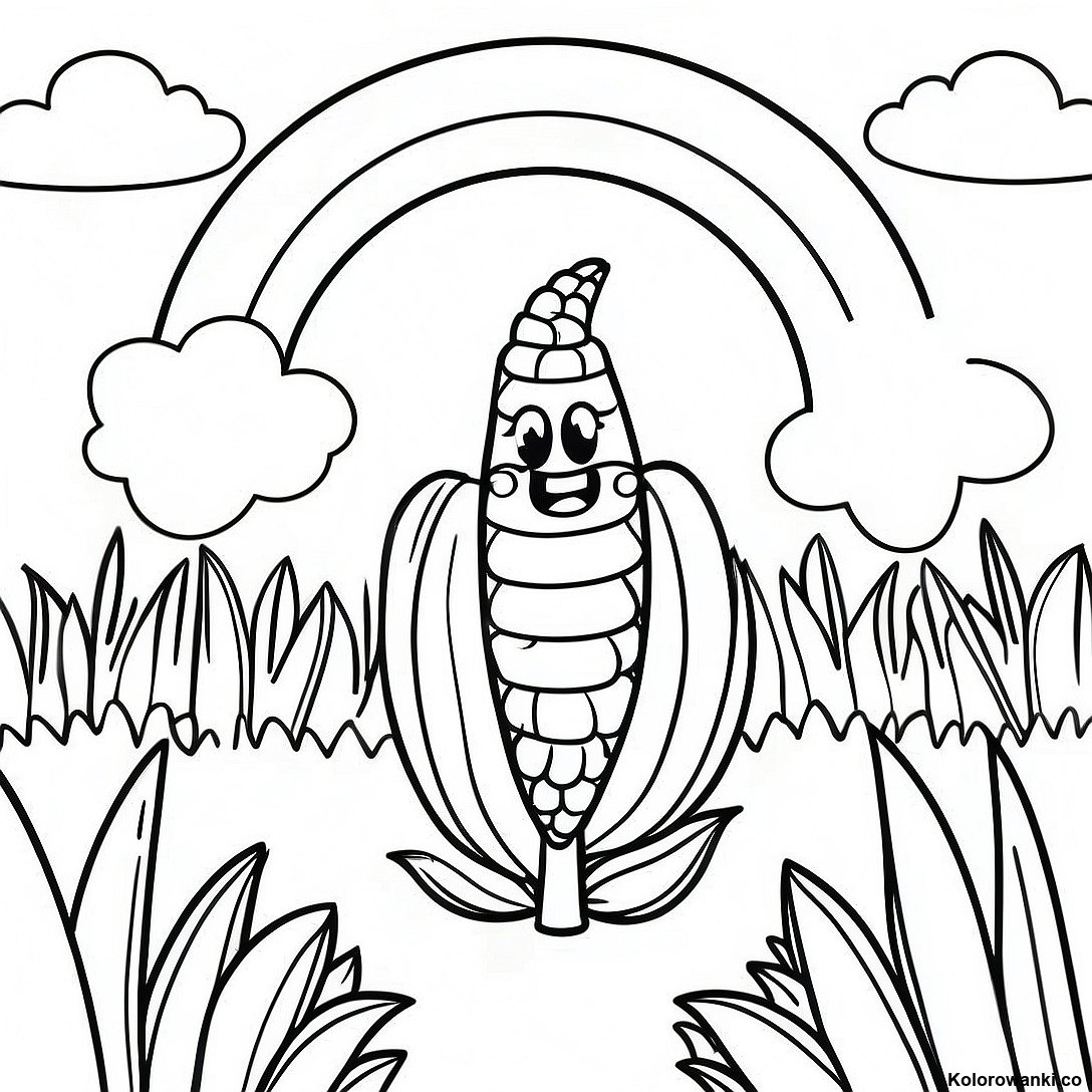 Szczęśliwy Tęczowy Kukurydza Na Polu - Kolorowanka