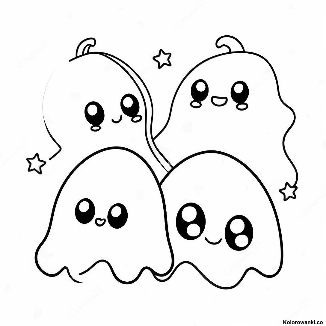 Urocze Kawaii Duchy Halloween Kolorowanka