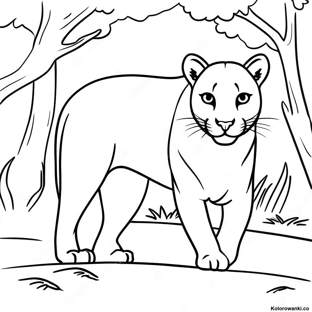 Pobierz Drukowalny PDF Wspaniały Kuguar Polujący Na Ofiarę - Kolorowanka