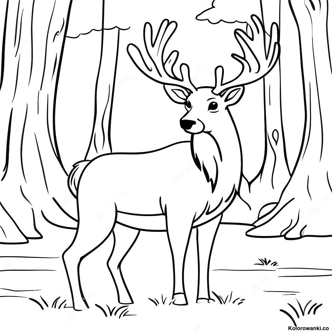 Pobierz Drukowalny PDF Wspaniały Renifer W Lesie - Kolorowanka