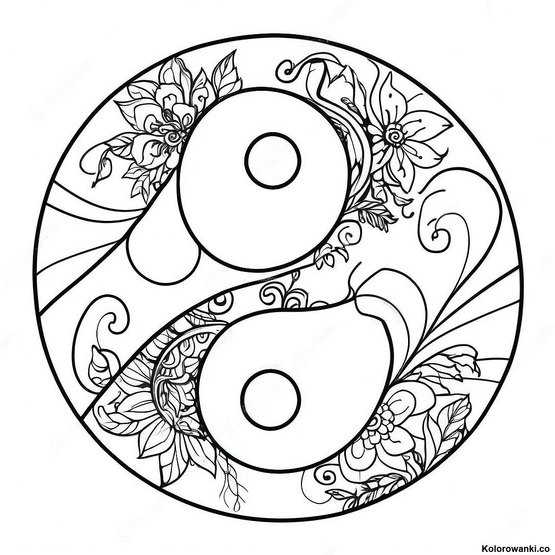 Pobierz Drukowalny PDF Yin Yang Z Elementami Natury Do Kolorowania