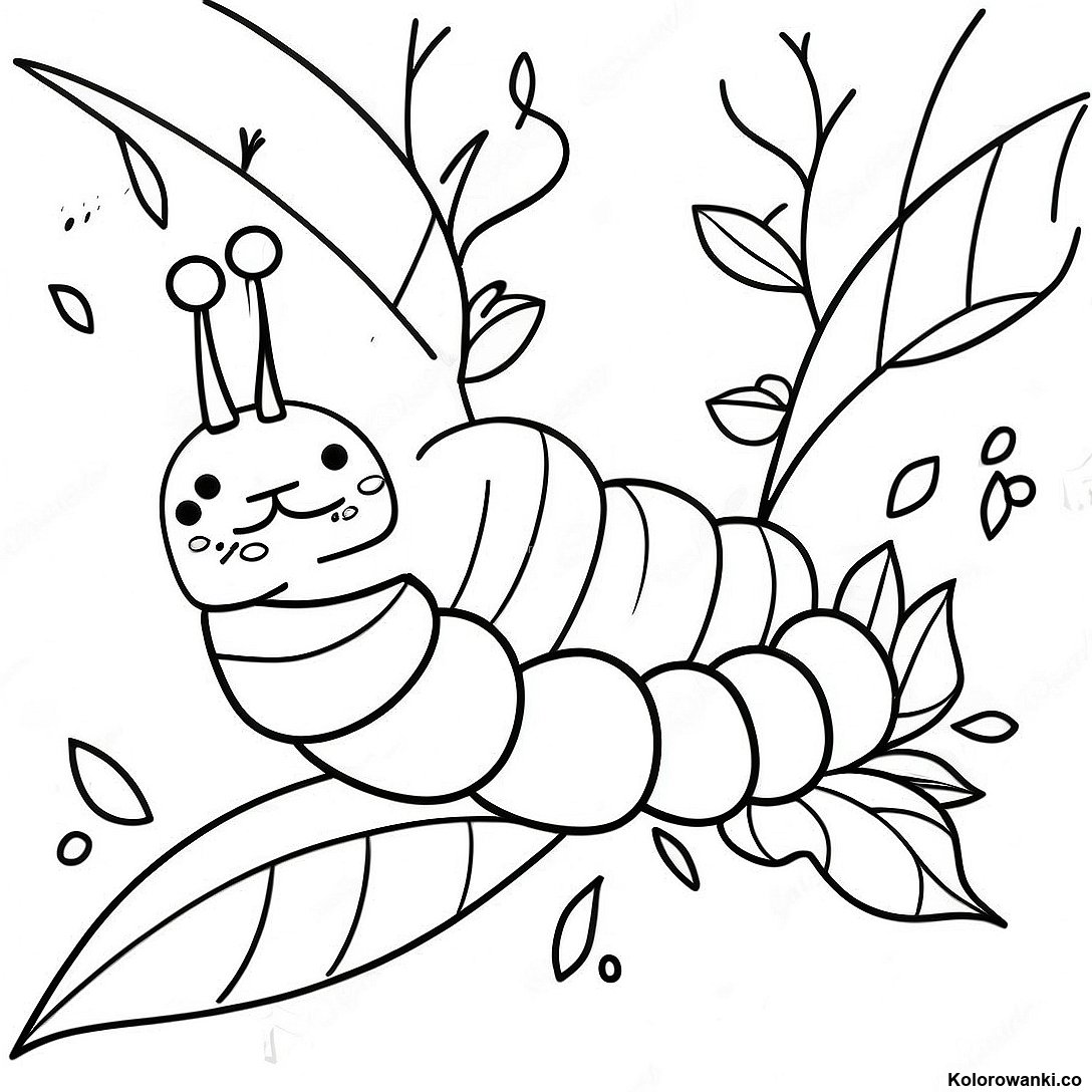Pobierz Drukowalny PDF Zabawna Gąsienica Na Kolorowance Z Liściem