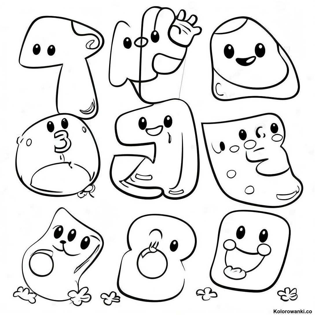 Pobierz Drukowalny PDF Zabawne Liczby Z Kreskówek Kolorowanka