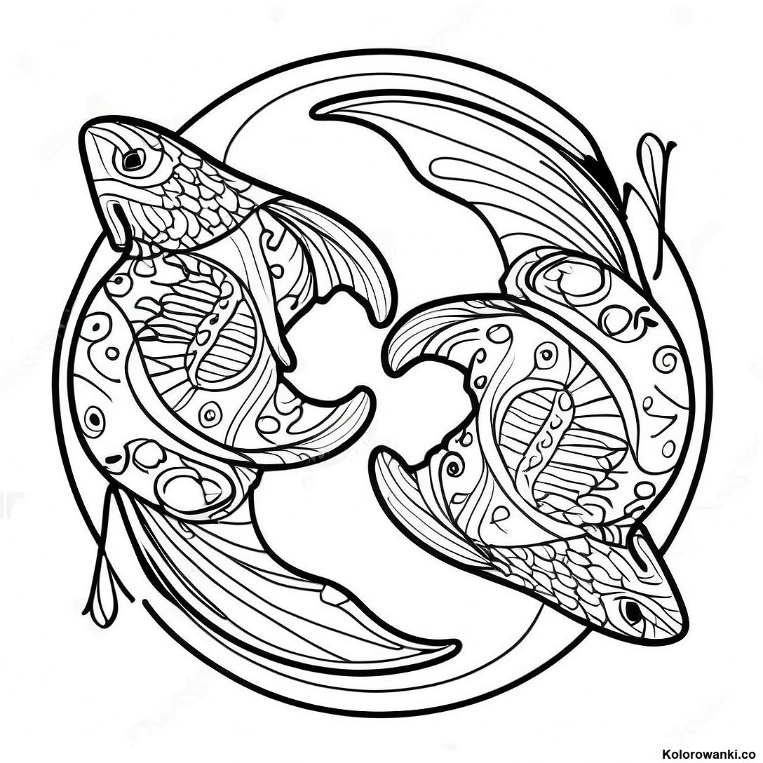 Pobierz Drukowalny PDF Znak Zodiaku Ryb - Kolorowanka